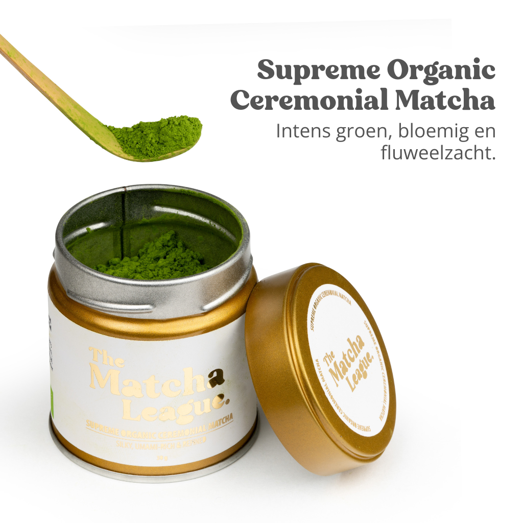 Intens groen, bloemig en fluweelzacht. Supreme is onze allerbeste ceremonial grade matcha.